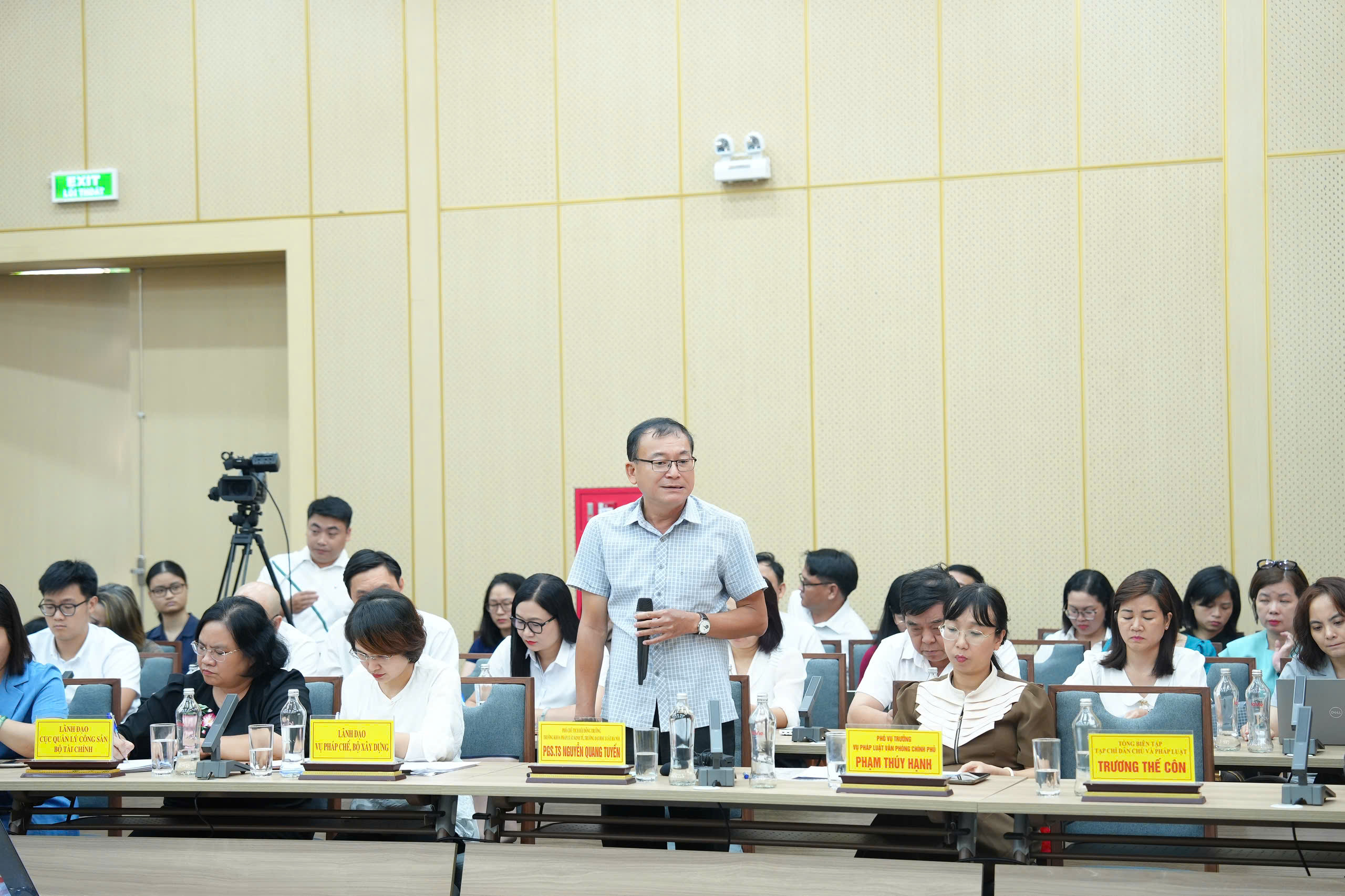 “Tôi đề xuất các bộ phận soạn thảo nghiên cứu bỏ quy định liên quan đến nội dung vừa nêu để thuận tiện cho người dân, góp phần cải cách thủ tục hành chính. Cùng với đó, việc chỉ định một số ngân hàng quốc doanh để người dân nộp nghĩa vụ tài chính đã gây khó khăn cho người dân. Bởi lẽ, ngày thứ 7, Chủ nhật, một số trường hợp đi nộp tiền thì ngân hàng quốc doanh không làm việc, chỉ có ngân hàng ngoài quốc doanh, đề xuất nội dung này cần sửa ngay”, Giám đốc Sở Tư pháp Hà Nội Ngô Anh Tuấn đề xuất.