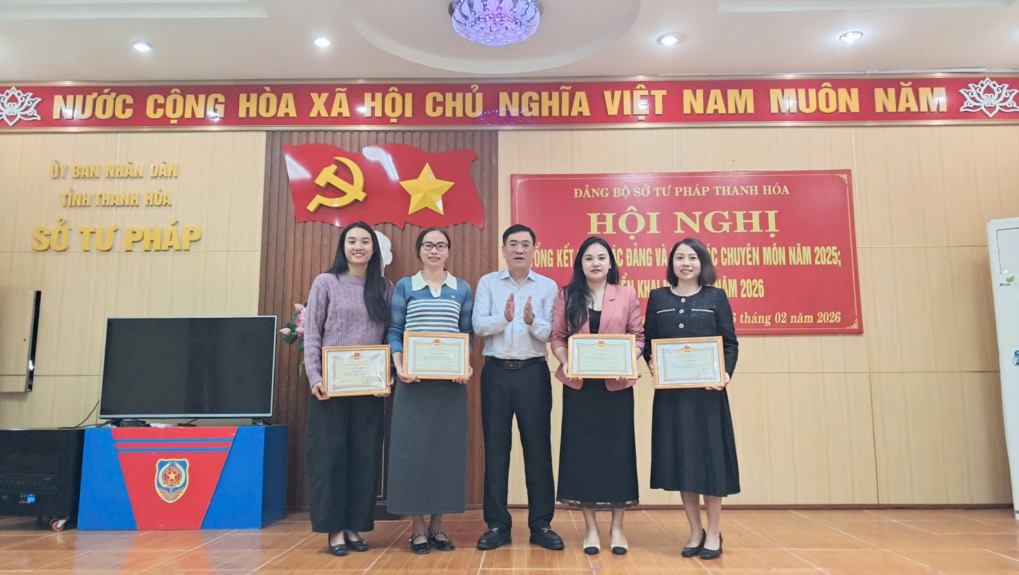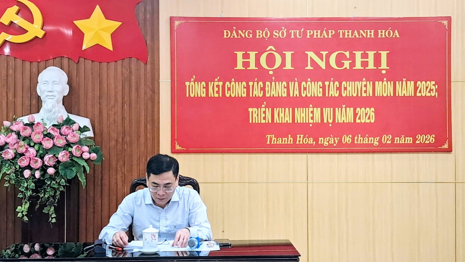 Ngày 06/02/2026, Sở Tư pháp tổ chức Hội nghị tổng kết công tác Đảng và tổng kết công tác chuyên môn năm 2025. Hội nghị nhằm đánh giá toàn diện kết quả lãnh đạo, chỉ đạo của Đảng ủy Sở; kiểm điểm việc thực hiện nhiệm vụ chính trị, chuyên môn trong năm 2025, đồng thời xác định phương hướng, nhiệm vụ trọng tâm năm 2026.
